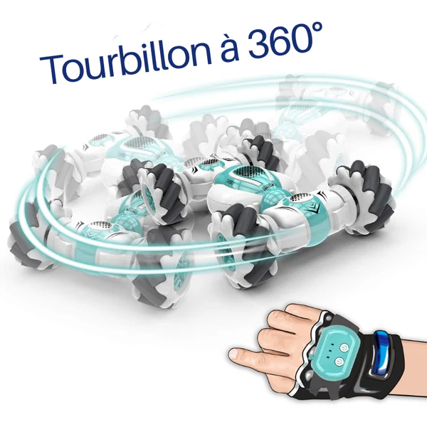 Déclenchez un tourbillon de cascades incroyables avec une voiture que vous contrôlez comme jamais. Avec une télécommande classique et un contrôleur gestuel intuitif, cette voiture est prête à tourner et à impressionner.