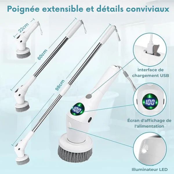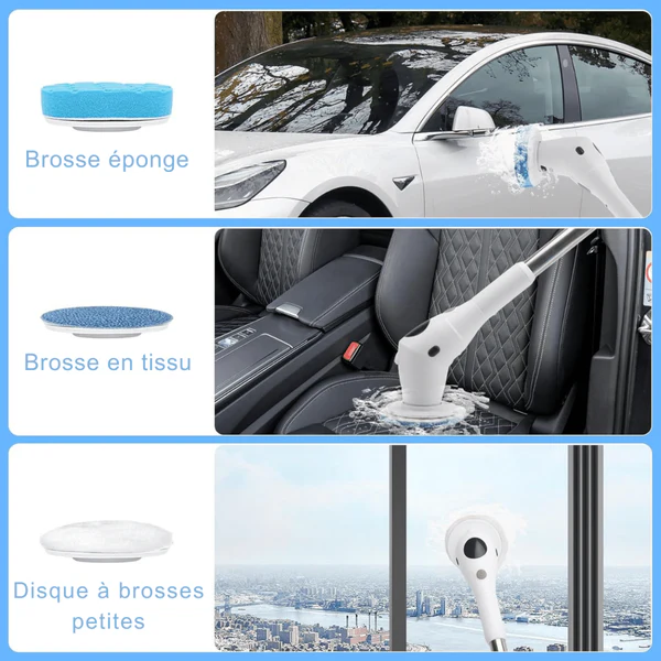 - 8 têtes de brosse remplaçables – Conviennent pour sols, joints, vaisselle et polissage automobile.