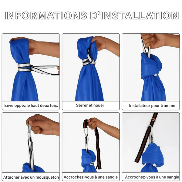 - Montage : Inclus : boucle en acier, corde de fixation et sangle d’extension