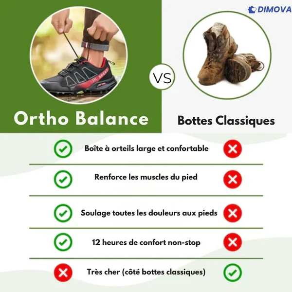 Les chaussures Ortho Balance ont été conçues avec soin pour vous accompagner au quotidien, que ce soit pour le travail, les balades ou vos aventures en plein air.