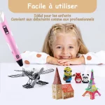 Vous cherchez un moyen amusant et éducatif de divertir votre enfant sans utiliser d’écran ? Avec le stylo 3D, votre jeune artiste peut explorer son imagination comme jamais auparavant. Qu’il s’agisse de concevoir ses propres créations ou de réaliser des chefs-d’œuvre colorés en 3D, cet outil innovant transforme le temps de jeu en un monde de créativité et d’apprentissage.